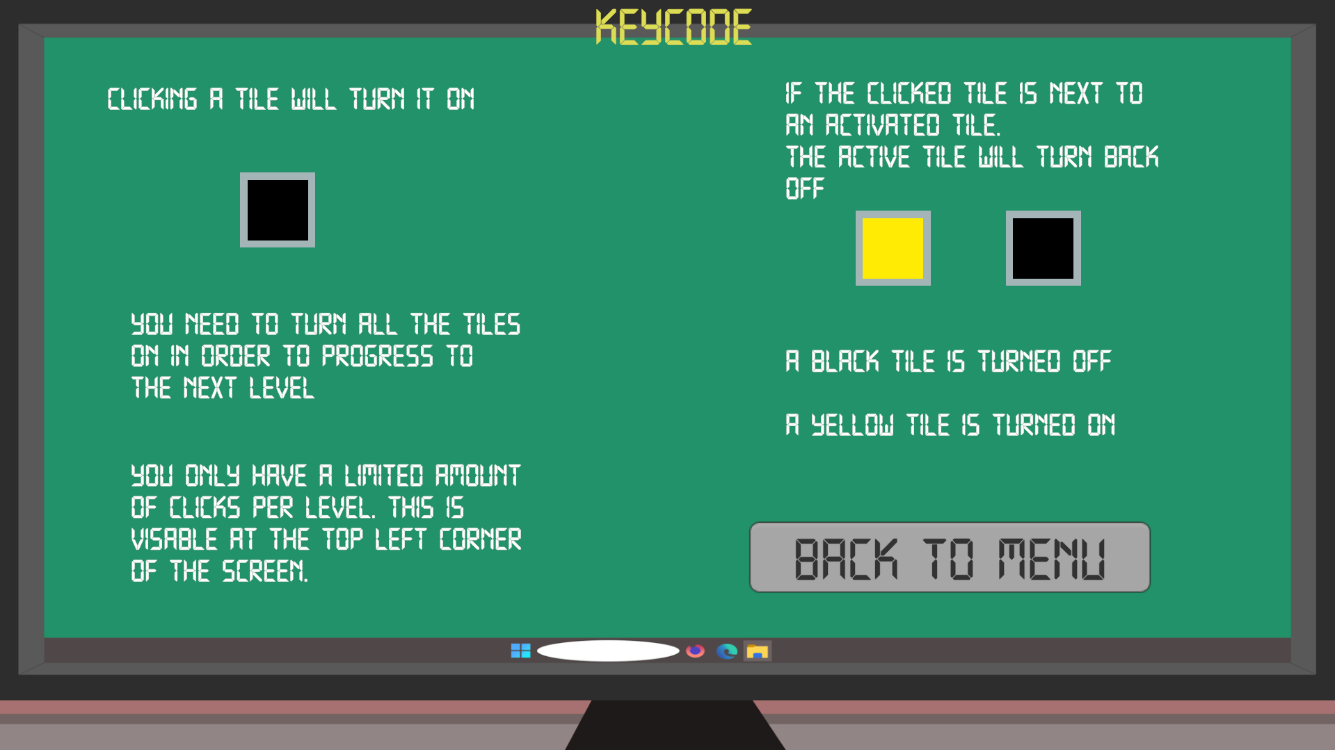 Welcome to Keycode. A short puzzle game where you are unlocking a computer through a series of small puzzles that are keeping it locked!
